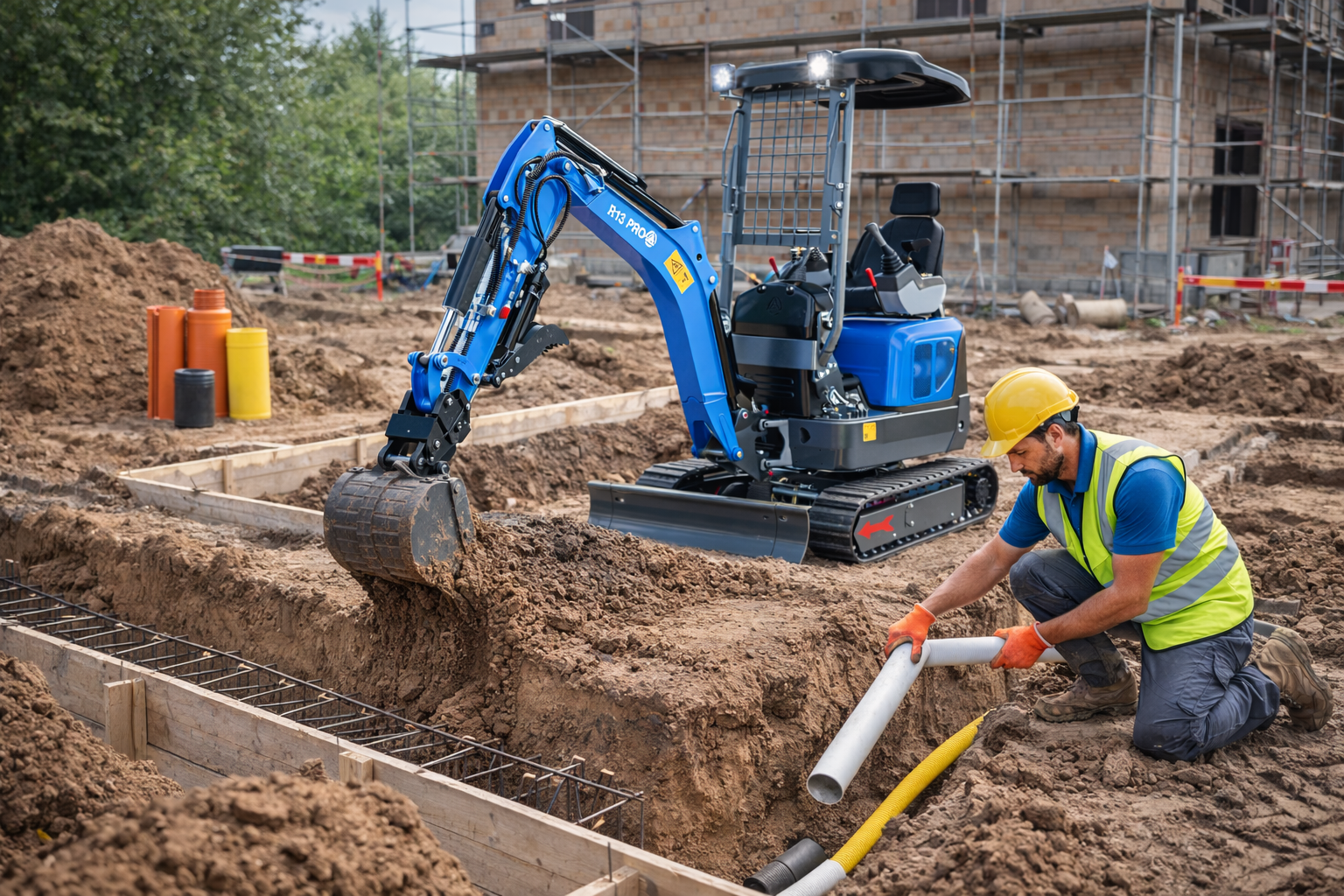 Wsparcie przy wykopach pod fundamenty i przyłączach.